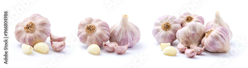 © NUM LPPHOTO, Obraz premium Garlic with cloves collection isolated on white background.