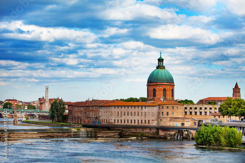 Naklejka premium Garonne river and Hopital de La Grave, Toulouse
