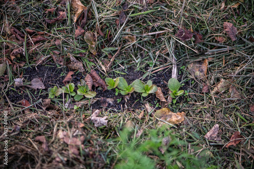 © knipseria, Fototapeta premium Garten im Herbst, Beet mulchen mit Grasschnitt,