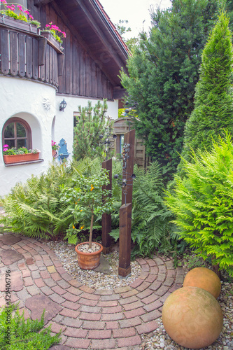 Fototapeta premium Garten mit vielen Pflanzen und Dekoartikel