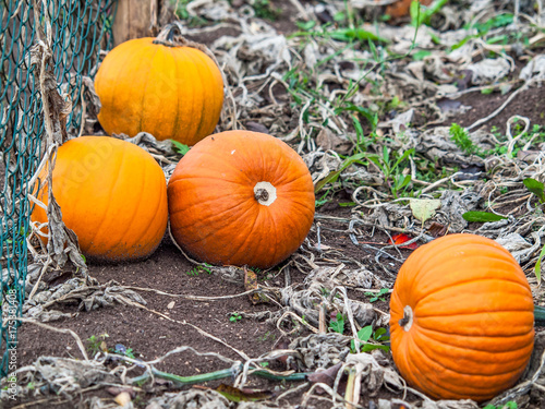 © focus finder, Fototapeta premium Gartenkürbisse im Beet
