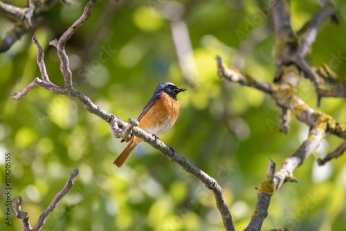 Fototapeta premium Gartenrotschwanz sitzt auf einem ast