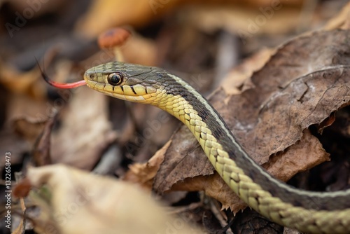 © JACQUELYN, Fototapeta premium Garter snake with tongue showing