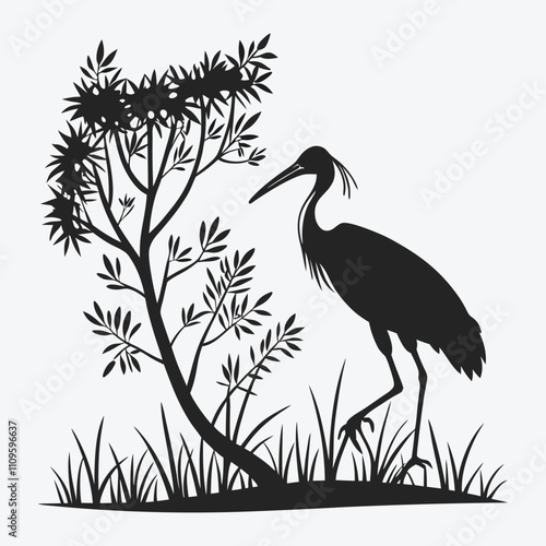 © MD. MIZANUR, Fototapeta premium Garza silhouette vector art and illustration