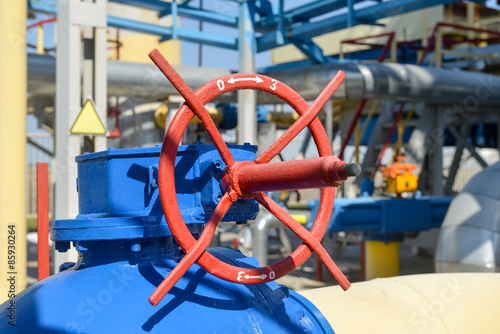 © sergbob, Naklejka premium Gas compressor station in bright sunny summer day