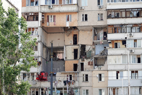 © SERHII BLIK, Naklejka premium Gas explosion in the building of Kiev