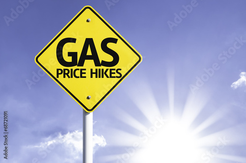 © gustavofrazao, Naklejka premium Gas Price Hikes road sign with sun background