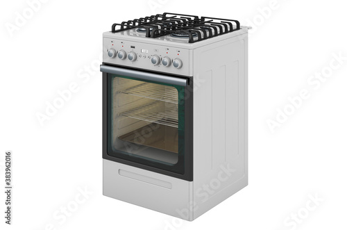 © natatravel, Obraz premium Gas range with oven and 4 burners, side view. 3D rendering