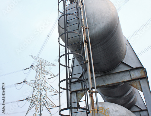 © Cozyta, Obraz premium gas tanks and power tower in the industrial estate, suspension e