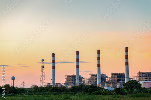 © bobo1980, Obraz premium Gas turbine electrical power plant at dusk in the morning