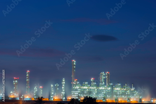 © tonjung, Naklejka premium Gas turbine electrical power plant at dusk with orange sky