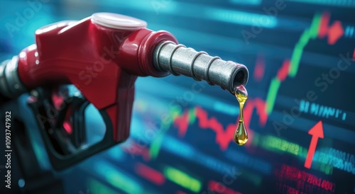 Fototapeta premium gasoline petroleum fuel nozzle with blurred background of oil price graph of...
