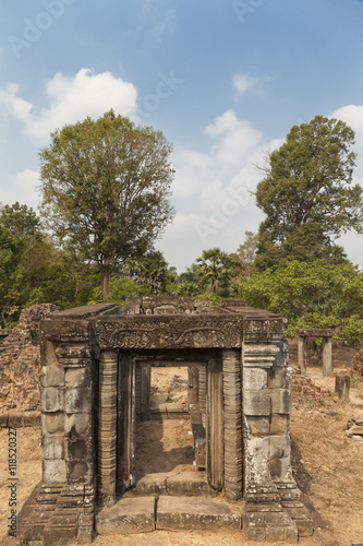 Naklejka premium Gate in a Pre Rup temple, Angkor, Cambodia. Tropical trees in a background
