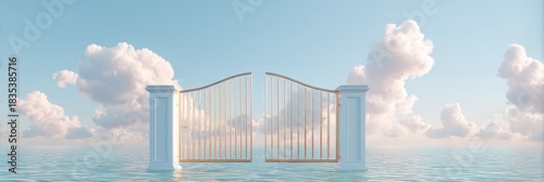 © inspiretta, Obraz premium Gate is in the water with clouds in the background