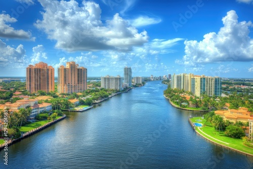 Fototapeta premium Gated Community in Boca Raton, Florida with Serene River View and Lush Green Landscape