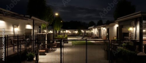 Obraz premium Gated community with a patio captured in soft ambient lighting, showing...