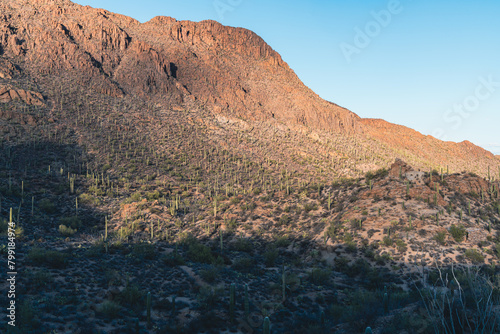 Obraz premium Gates Pass in Tucson Arizona, saguaro cactus on mountainside