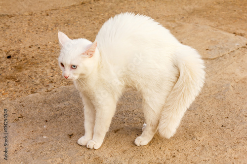 © LFRabanedo, Naklejka premium Gato blanco en postura agresiva.