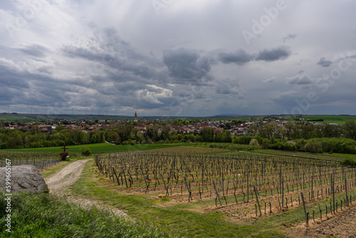 Fototapeta premium Gau-Odernheim in Rheinhessen mit Donnersberg