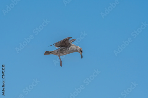 Obraz premium Gaviota lanzando su concha, en las playas de coquimbo.