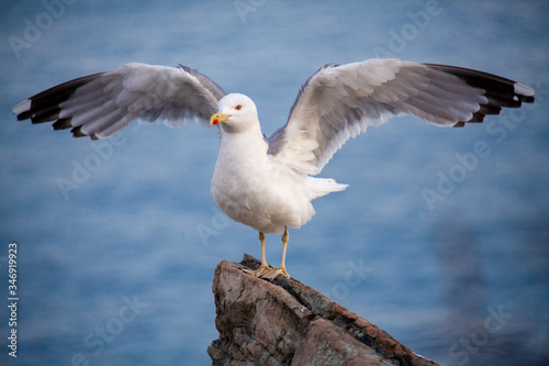© Javier Alarcon, Fototapeta premium Gaviota parada en una roca lista para volar