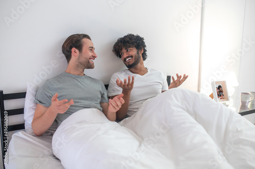Fototapeta premium Gay couple talking to each other in their bedroom
