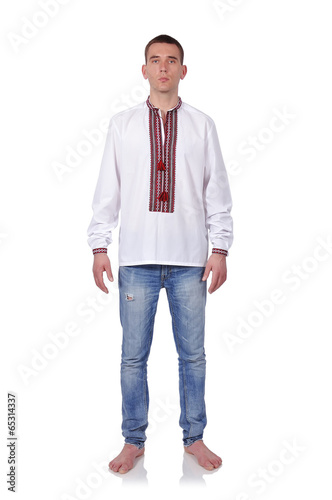 Fototapeta premium gay in Ukrainian embroidered shirt