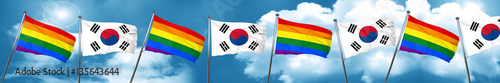 Obraz premium Gay pride flag with South Korea flag, 3D rendering