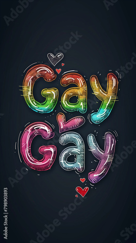 © Aleksandra, Naklejka premium "Gay" written in stylish typography, adorned with subtle rainbow heart accents, elegantly combining modern design with a touch of pride symbolism.