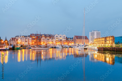 © pillerss, Obraz premium Gdansk. Central embankment at night.