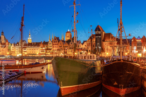 © pillerss, Obraz premium Gdansk. Central embankment at night.