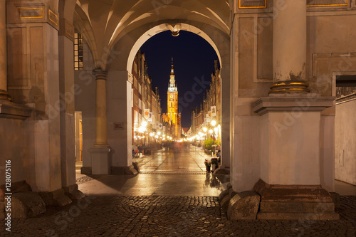 © pop_gino, Fototapeta premium Gdansk City Hall clock tower as seen from a tunnel at night