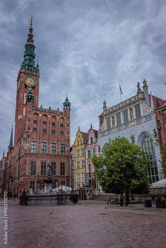 © Jakub, Naklejka premium Gdansk, Poland - May 25 2024 "The old town architecture during morning rain"