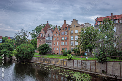 Naklejka premium Gdansk, Poland - May 25 2024 "The old town architecture during morning rain"