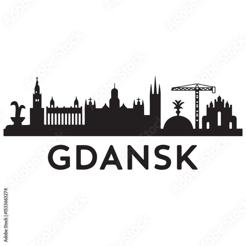 © firoz, Obraz premium Gdansk skyline horizontal banner. Gdansk, Poland. Vector template for your design. Vector black silhouette. with white background