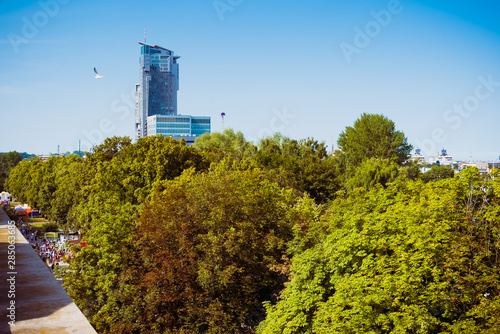 Obraz premium Gdynia skyscraper called Sea Towers towering over the trees