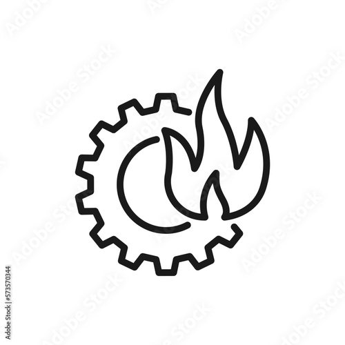 Naklejka premium Gear and fire. Engine burning icon line style isolated on white background....