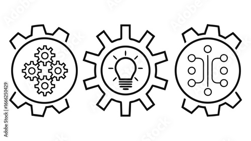 Obraz premium Gear and technology illustration with light bulb and circuit symbols...