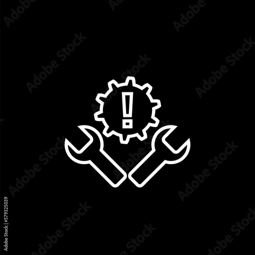 Obraz premium Gear and wrench.Fixing errors, technical problems line icon on black background.