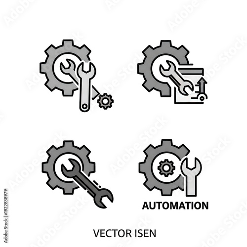 © Nimra, Obraz premium Gear and wrench icons for automation and maintenance, vector set