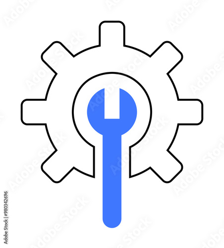 © robu_s, Obraz premium Gear and wrench symbol with simple lines. Iconic symbol for engineering, technical support, settings, repair, and maintenance. Ideal hardware support, software settings, customer service, mechanical