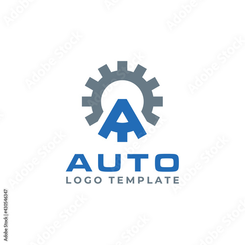Obraz premium Gear Cog Wheel with Initial Letter A for machine factory industry logo design