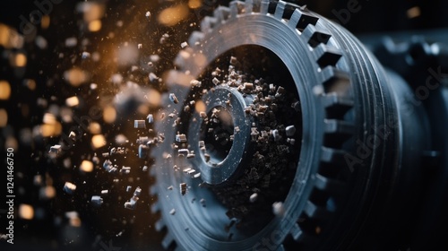 Fototapeta premium Gear grinding machine, sparks fly, industrial factory, close-up, manufacturing