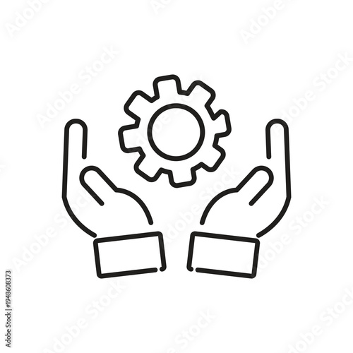 Obraz premium Gear in Hand Icon , Technical Support Service Symbol Vector,Technical Maintenance Icon, Gear in Hand Support Symbol,System Maintenance Icon , Gear Support Hand Symbol..eps