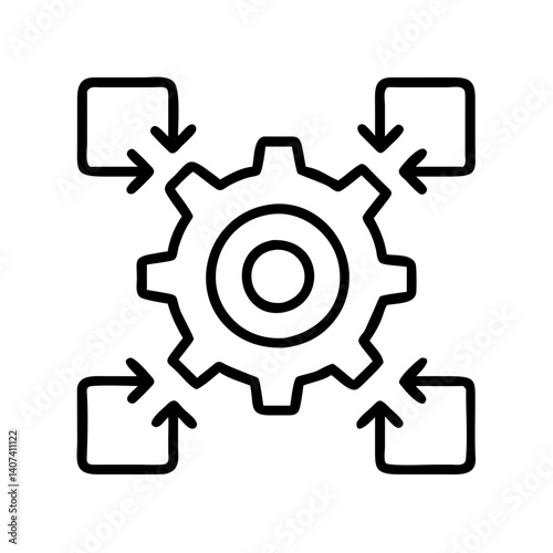 Obraz premium Gear mechanism with input arrows concept for process optimization and...