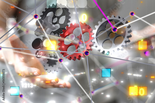© vegefox.com, Obraz premium gear Technology background. Big data concept - 3d
