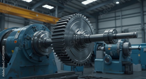 Fototapeta premium Gear Wheel Assembly on Machine in Manufacturing Plant Interior