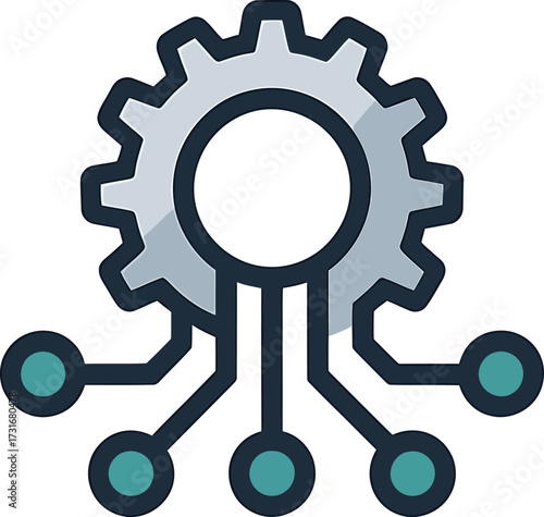 © Anamul, Obraz premium Gear with Circuit Board Connector Symbol Technical Solution Connection Concept