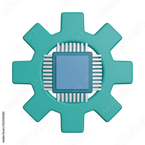 © Sri, Obraz premium Gear with computer chip symbolizing technology and engineering. Isolated transparent background