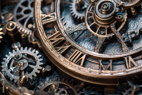Fototapeta premium Gears and cogs mechanism. Clockwork of a watch with jewels Industrial machinery. Generative AI